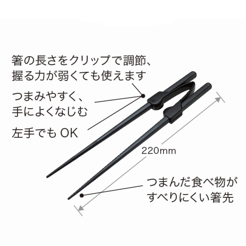 ●箸先を合わせるクリップ付きなので、