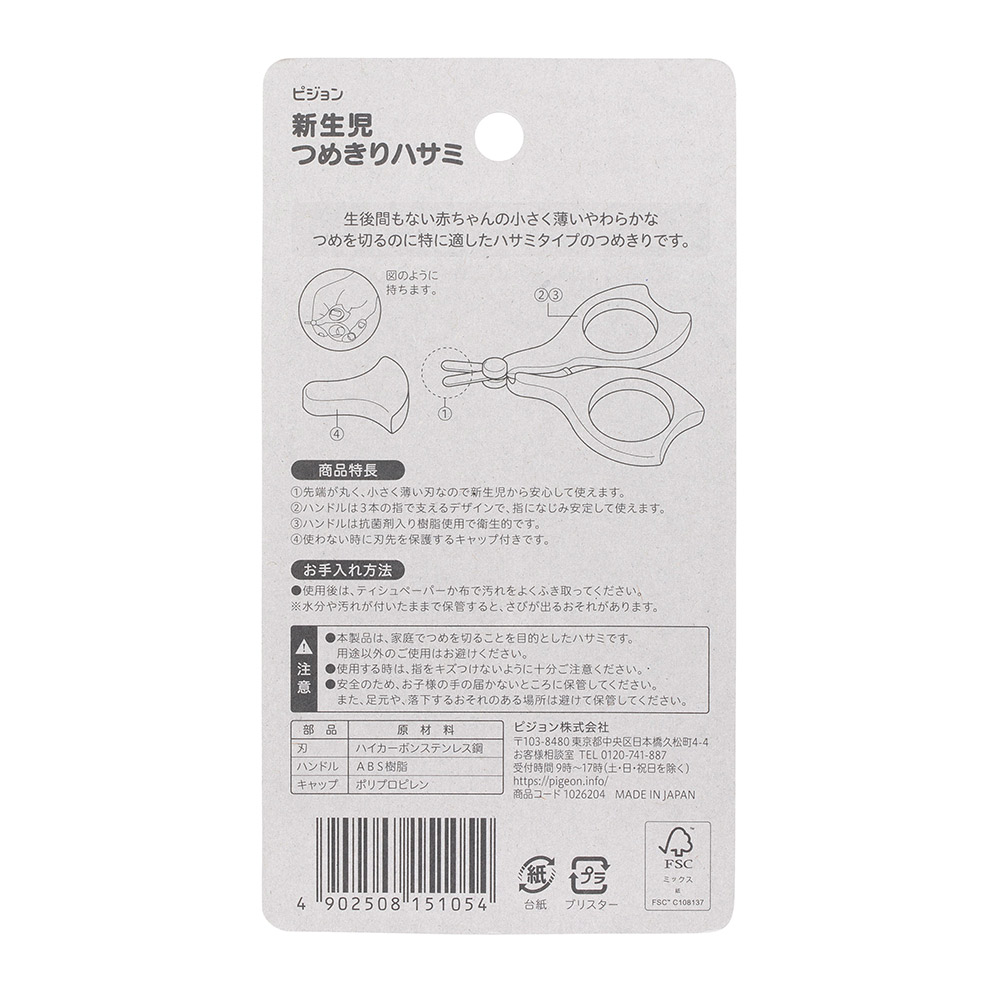 ●先端が丸く、小さく薄い刃なので新生児から安心して使えます。