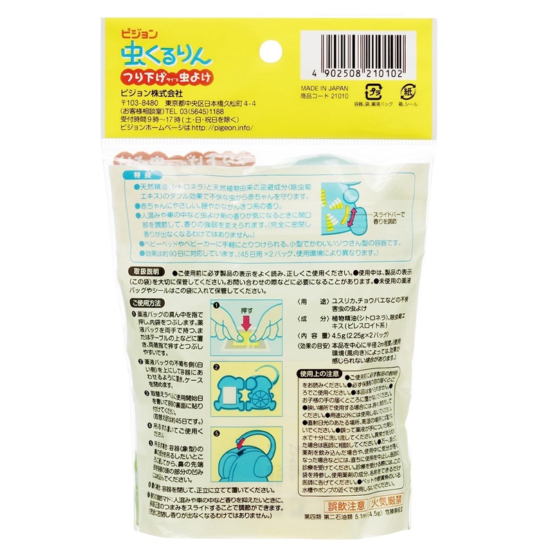 天然精油(シトロネラ)と天然植物由来の忌避成分(除虫菊エキス)のダブル効果で虫から赤ちゃんを守るつり下げ、立て置き両方使
