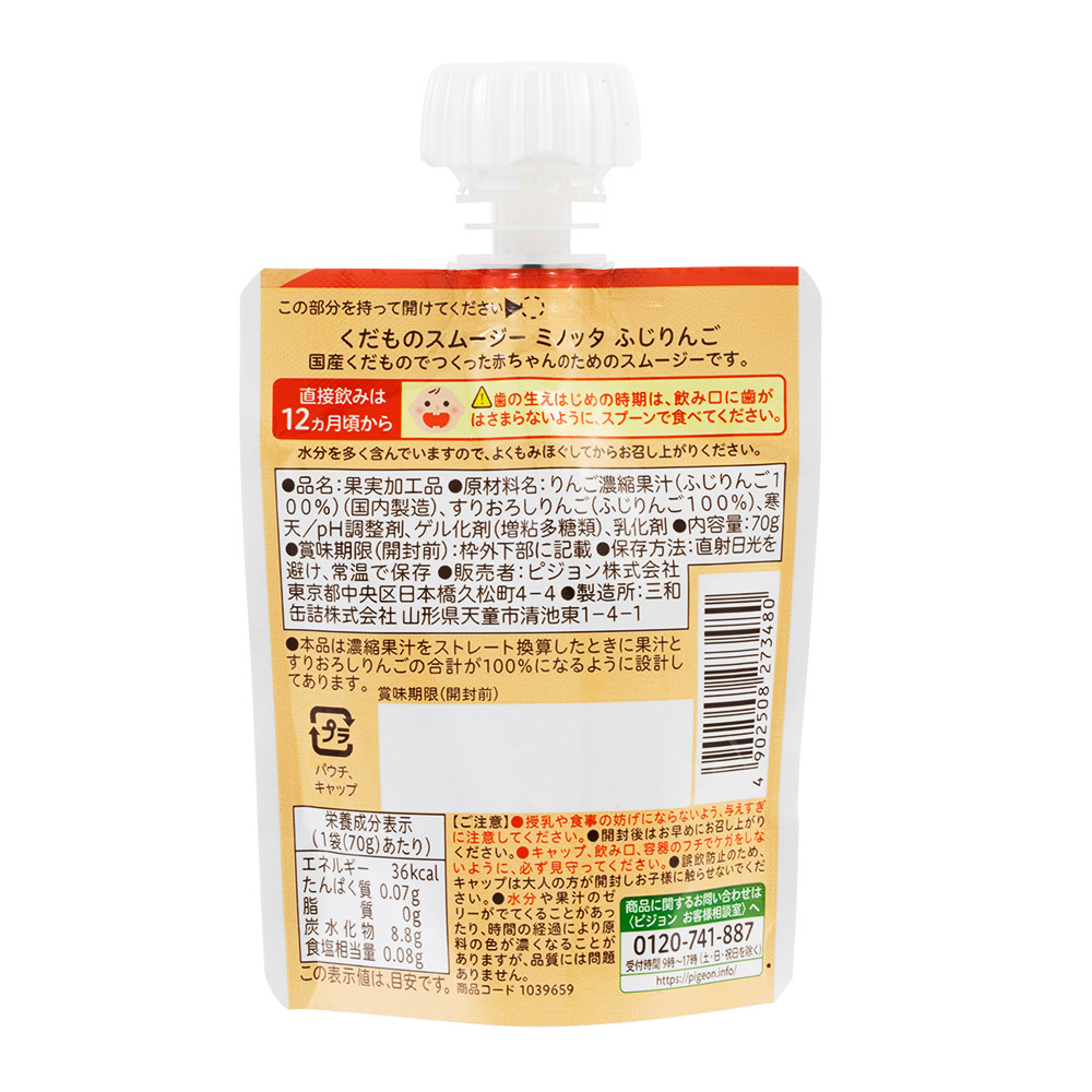 - りんご濃縮果汁(ふじりんご100%)(国内製造)、すりおろしりんご(ふじりんご100%)、寒天/pH調整剤、