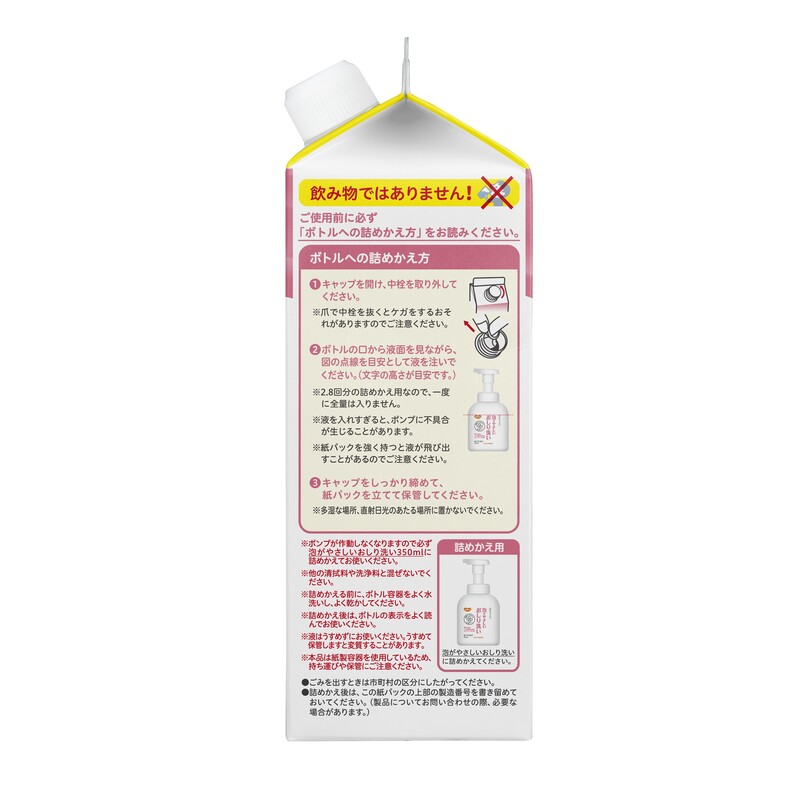 ・1.適量(1~3プッシュ)を手またはタオル・ティッシュにとり、おしりに広げて洗います。