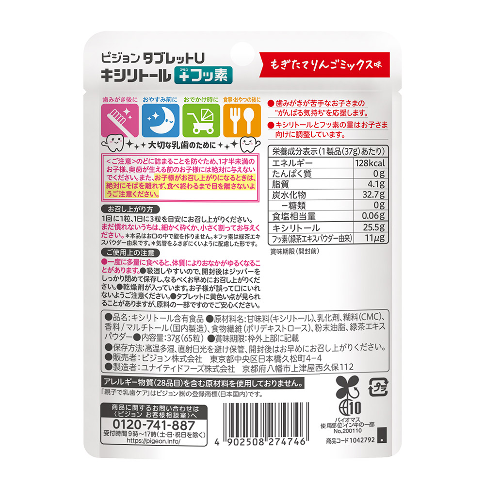 ・キシリトール(甘味料)とフッ素の量はお子さま向けに調整しています。
