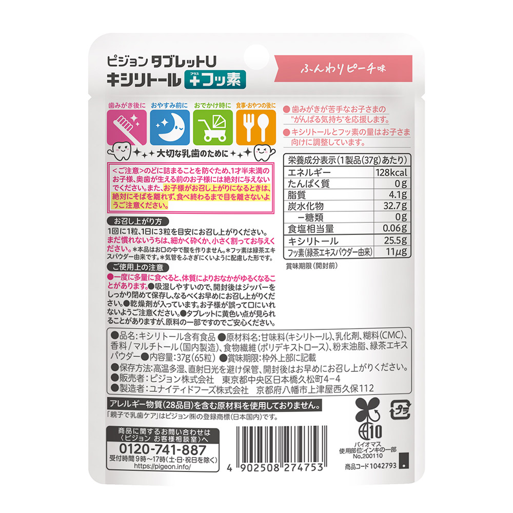 ・キシリトール(甘味料)とフッ素の量はお子さま向けに調整しています。