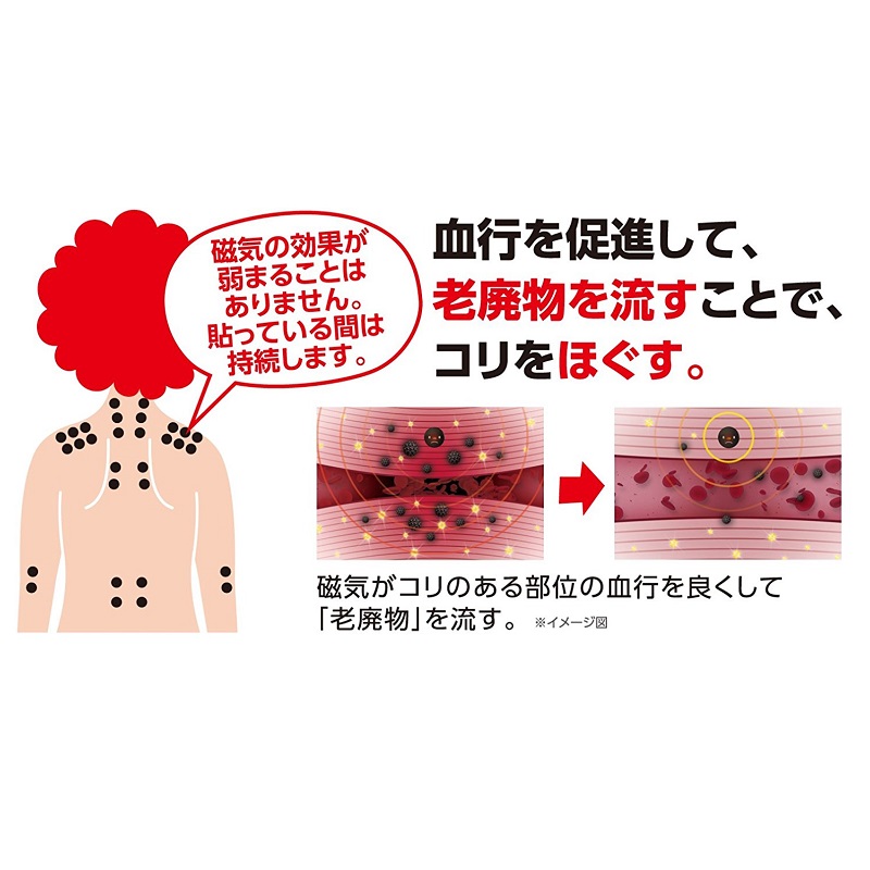 コリのある部位に貼ってじんわりほぐす、小さな円形状の磁気治療器です。