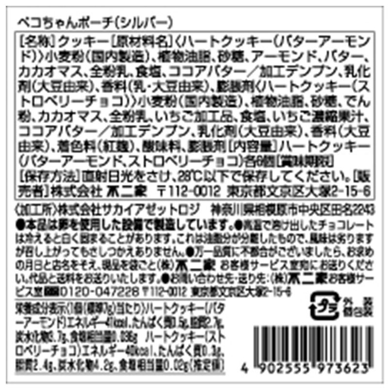 ハートクッキー12個入の普段使いにも最適な可愛いオリジナルチャーム付きペコちゃんポーチです。