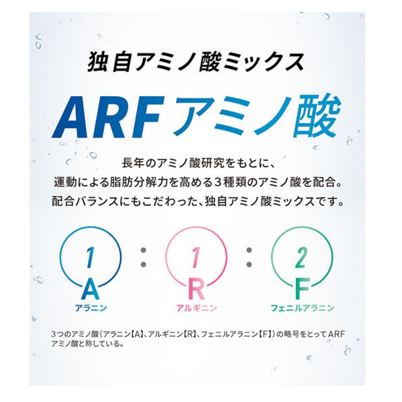 運動による体脂肪低減効果が期待できるARFアミノ酸1,500mgを配合した「機能性表示食品」。