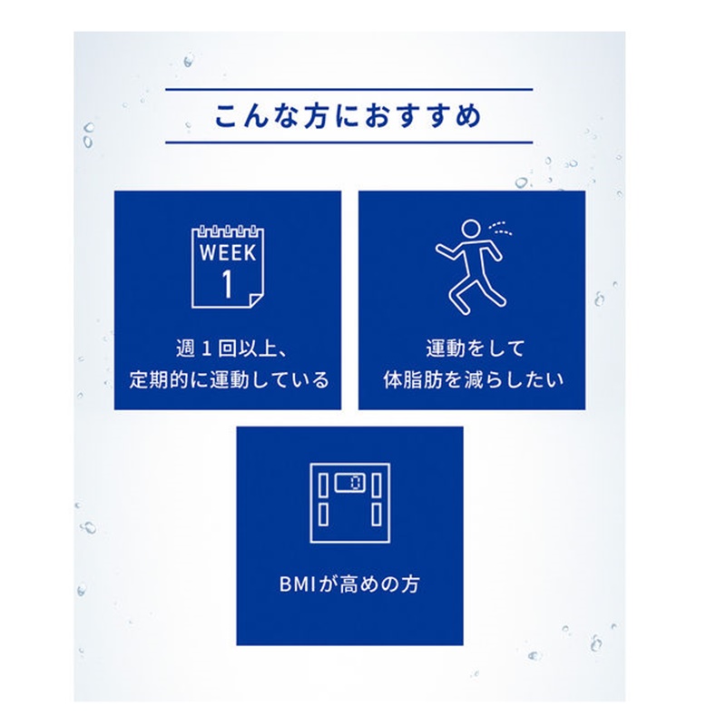 おいしく手軽に摂取して、運動やアクティブな日常生活で体脂肪を減らすことが出来る。