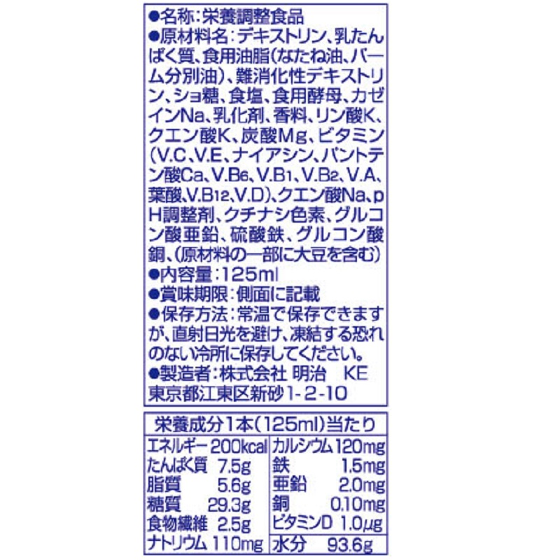 1本125mlで200kcal(おにぎり約1個分のエネルギー)が摂れる、少量で高エネルギー設計。