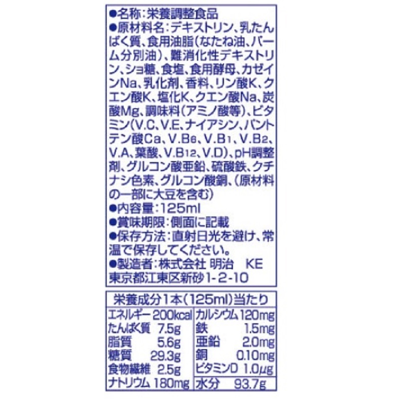 - デキストリン、乳たんぱく質、食用油脂(なたね油、パーム分別油)、ショ糖、難消化性デキストリン、