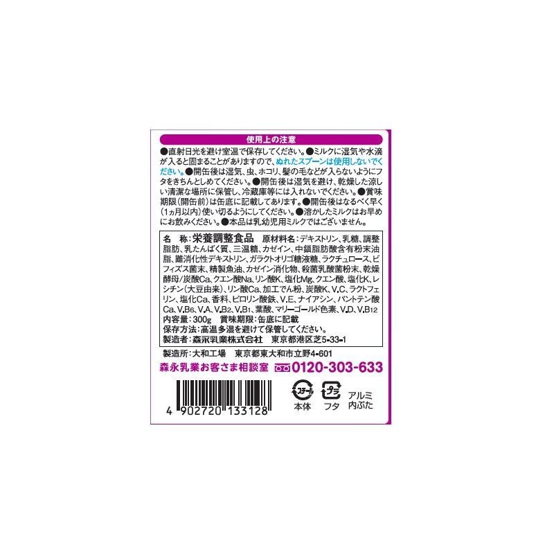 デキストリン、乳糖、調整脂肪、乳たんぱく質、三温糖、カゼイン、中鎖脂肪酸含有粉末油脂、難消化性デキストリン、