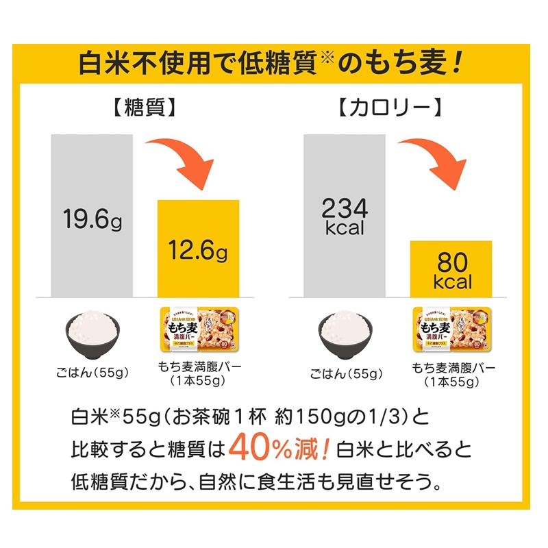 1本55gあたりエネルギー80kcal、食物繊維2.8gのヘルシー設計で忙しいときでも手軽に食べられ、低カロリーで十分満