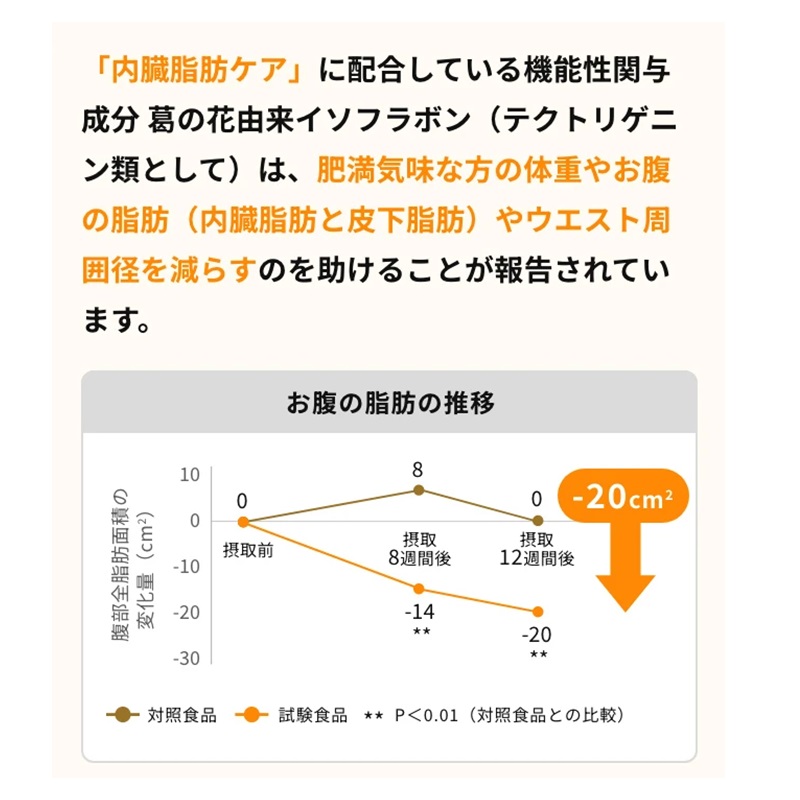 葛の花由来イソフラボンを2粒に22mg配合しております。