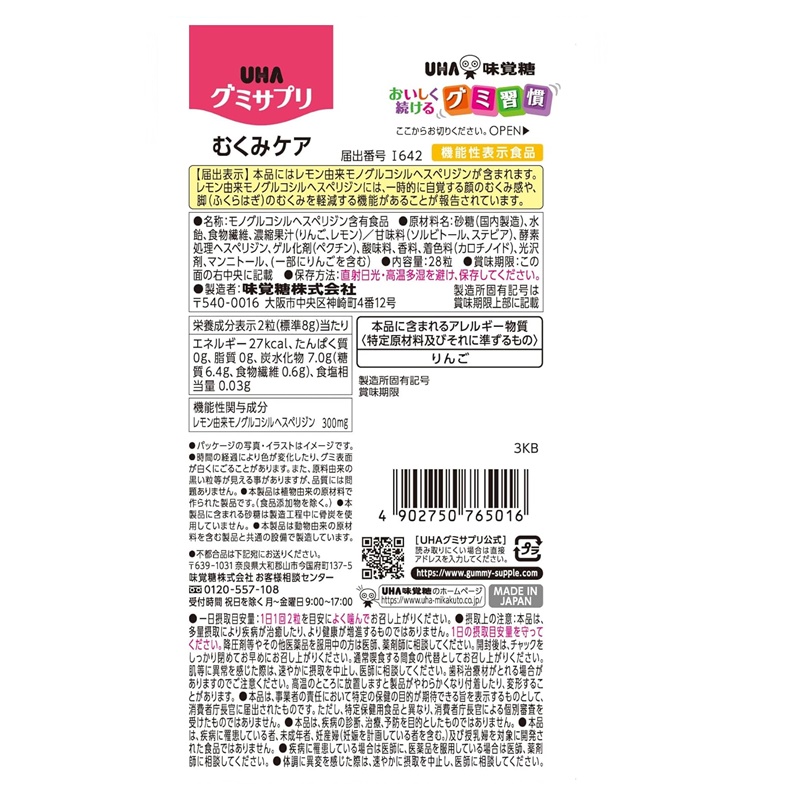 機能性関与成分「レモン由来モノグルコシルヘスペリジン」の働きで、一時的に自覚する顔のむくみを軽減することが報告されていま