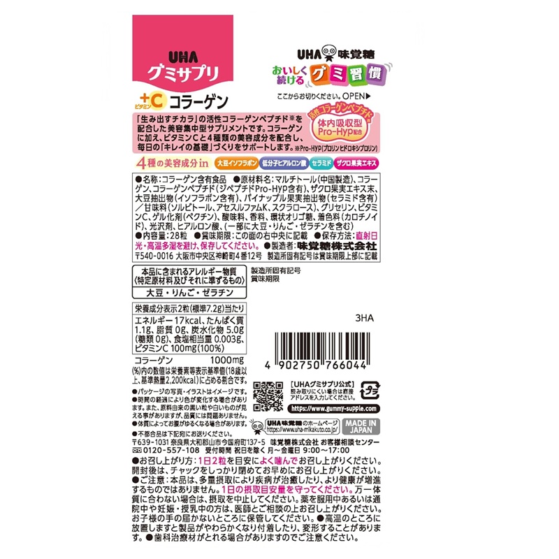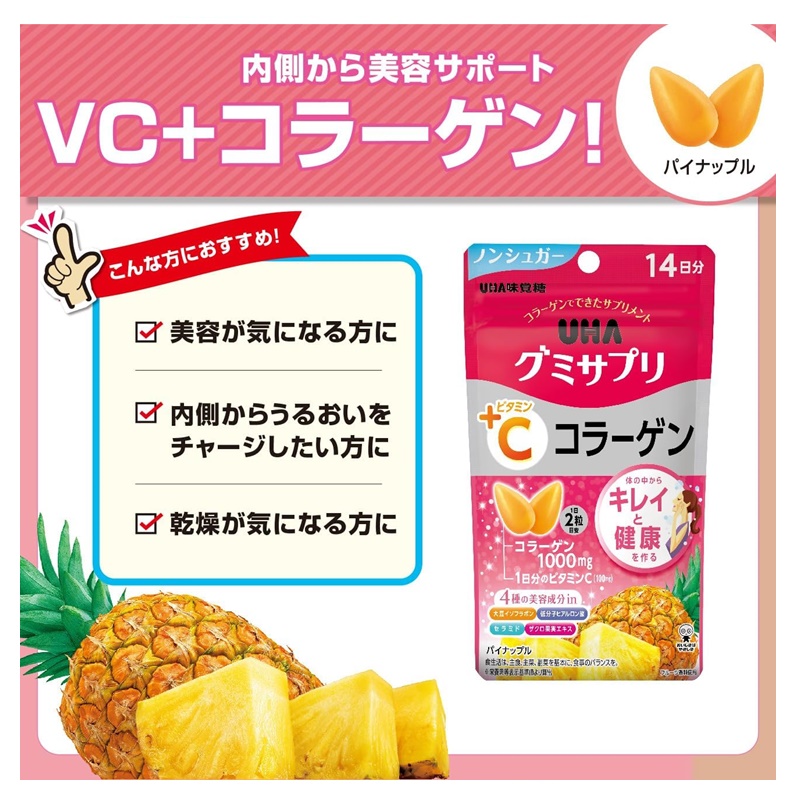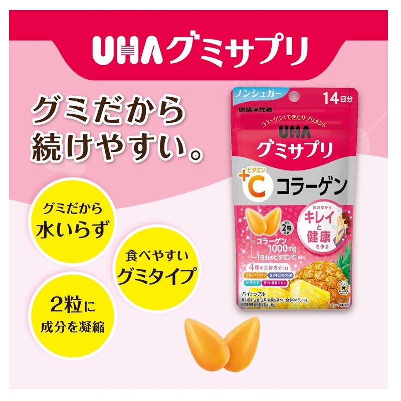 1日2粒でコラーゲン1000mgと1日分のビタミンC100mg配合。