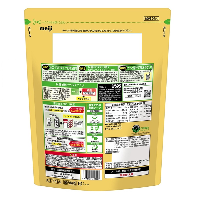 たんぱく原料として、吸収の良い「ホエイプロテイン」を100%使用しています。