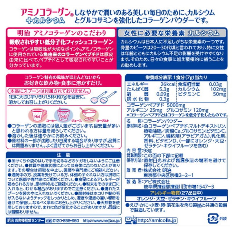 カルシウム102mgとグルコサミン120mgを強化したコラーゲンパウダー。