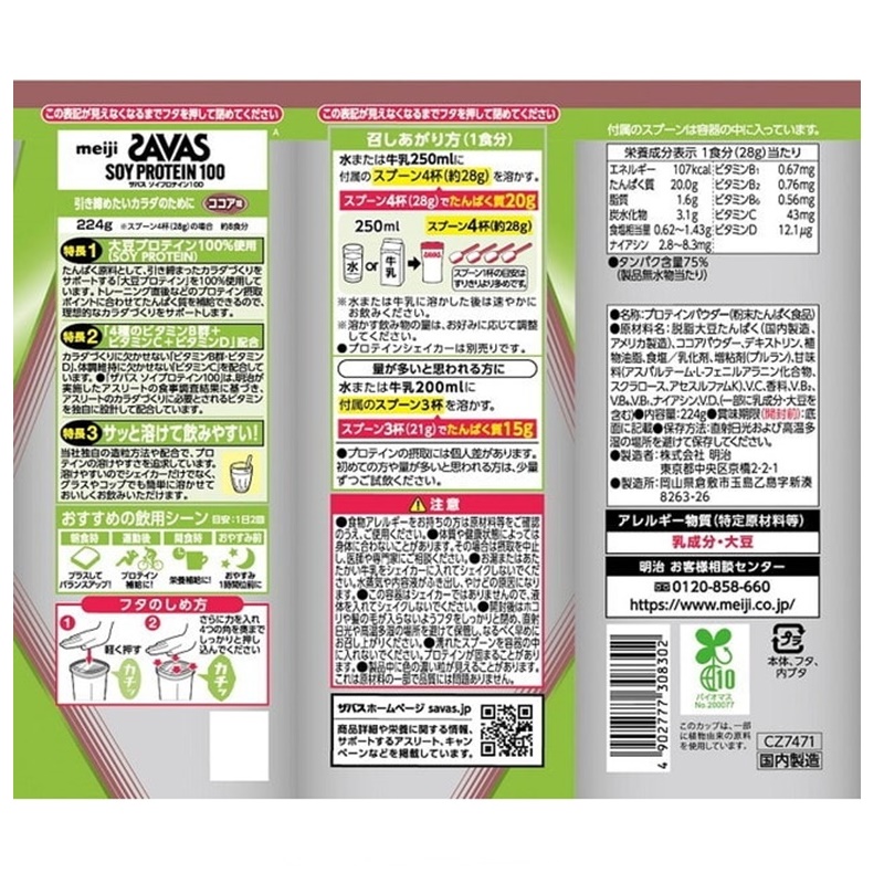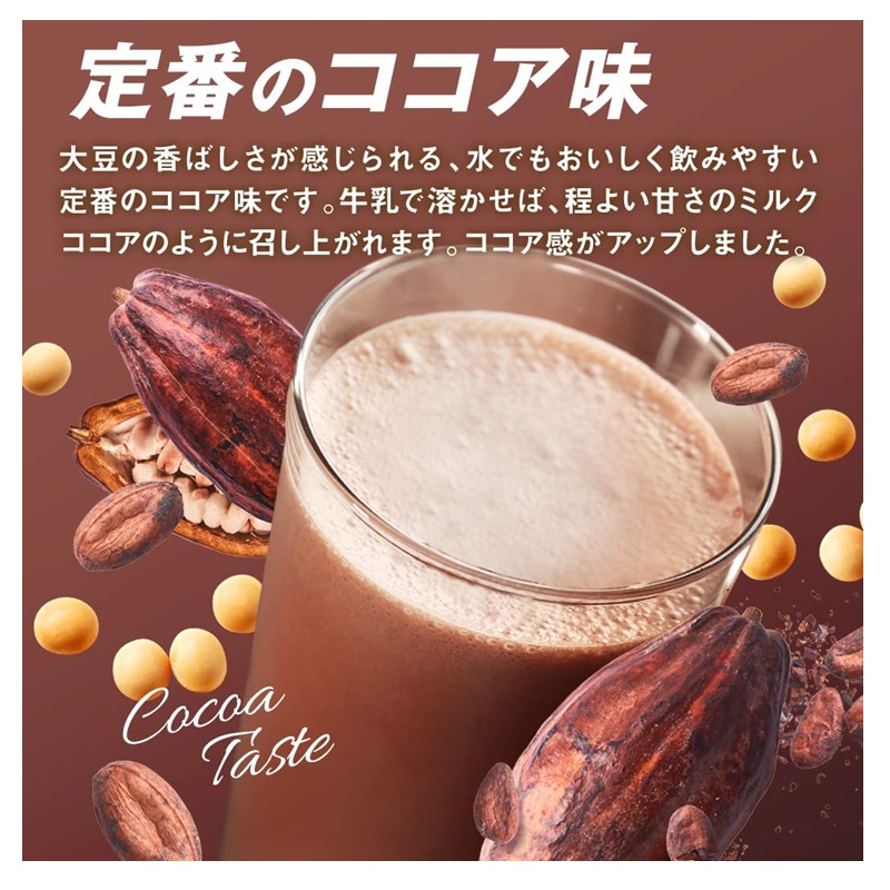 - 脱脂大豆たんぱく(国内製造、アメリカ製造)、ココアパウダー、デキストリン、植物油脂、食塩/乳化剤、増粘剤(プルラン)、甘