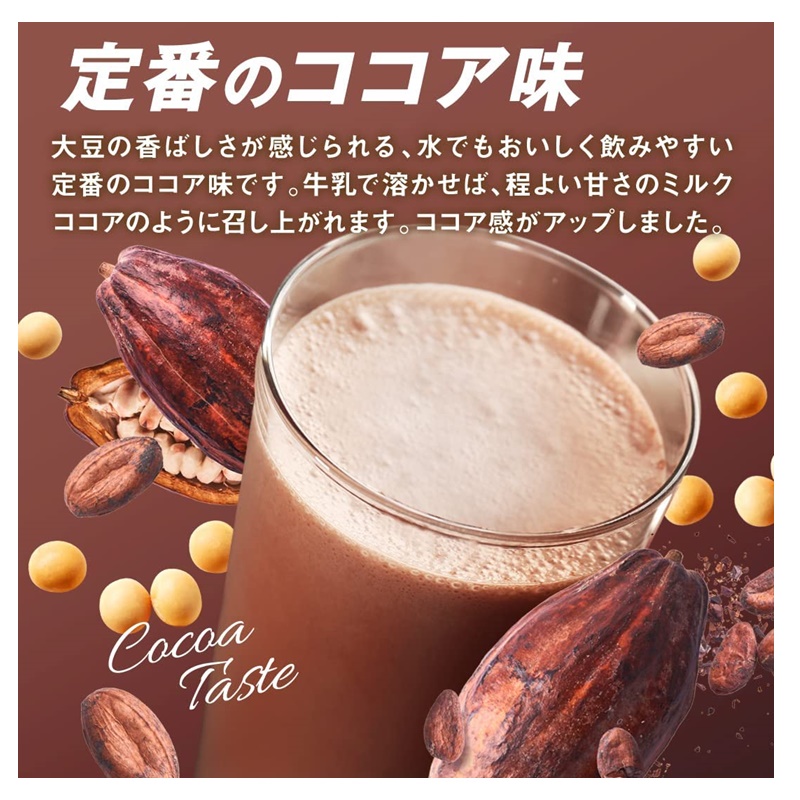 - 脱脂大豆たんぱく(国内製造、アメリカ製造)、ココアパウダー、デキストリン、植物油脂、食塩/乳化剤、増粘剤(プルラン)、甘