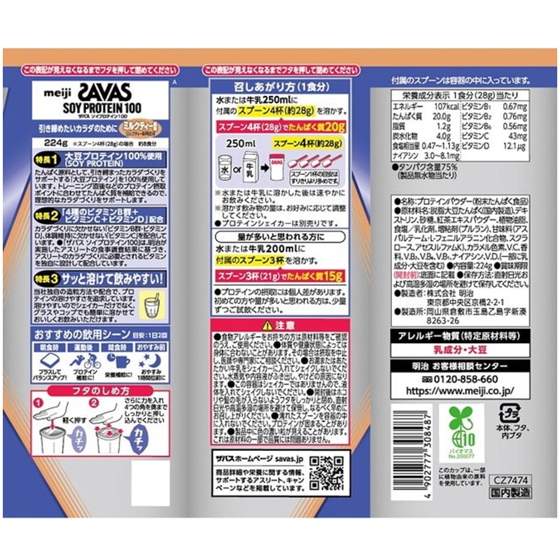 - 脱脂大豆たんぱく(国内製造)、デキストリン、砂糖、紅茶エキスパウダー、植物油脂、食塩/乳化剤、増粘剤(プルラン)、甘味料