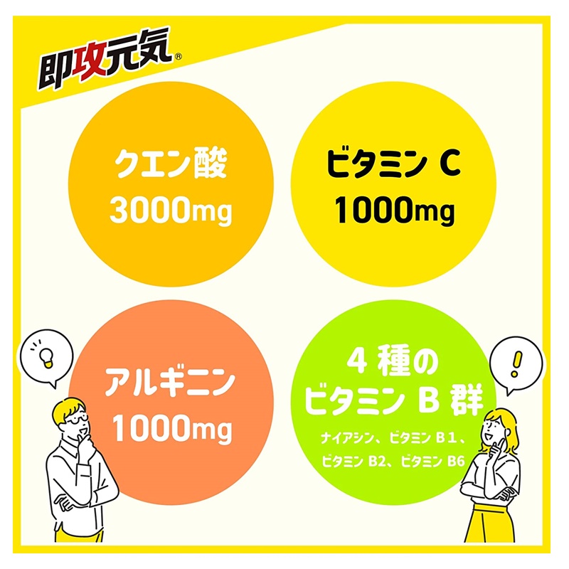 アルギニン1000mgと4種のビタミンB群(ナイアシン、VB1、VB2、VB6)を配合。