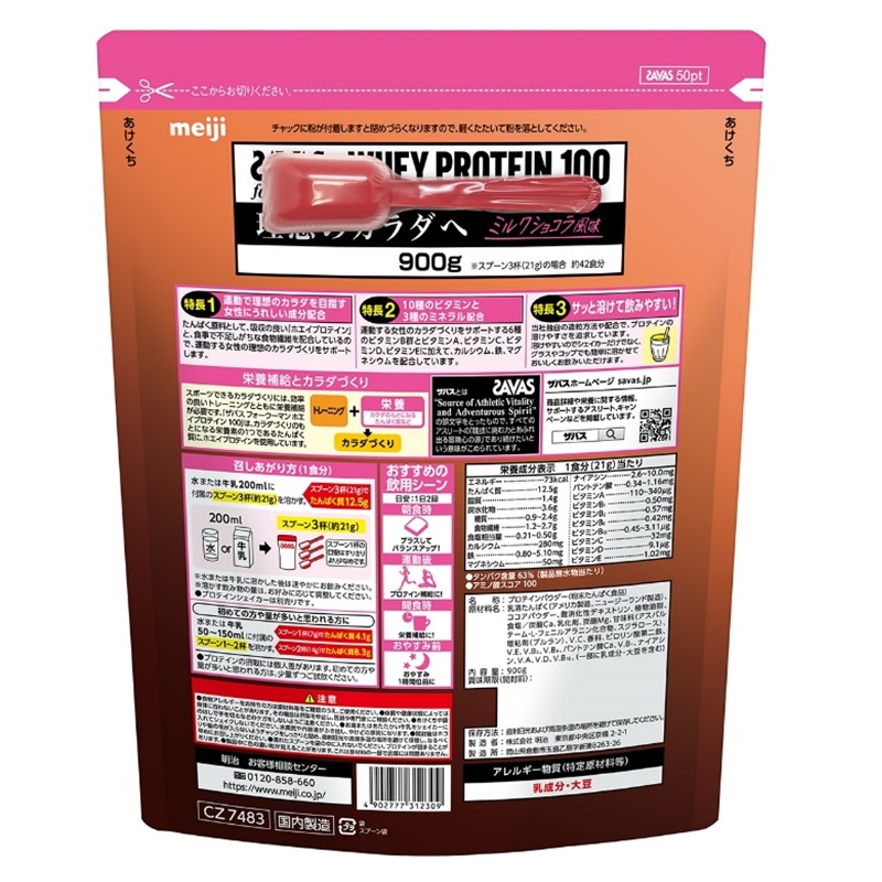 たんぱく質として吸収のよいホエイプロテインを100%使用し、