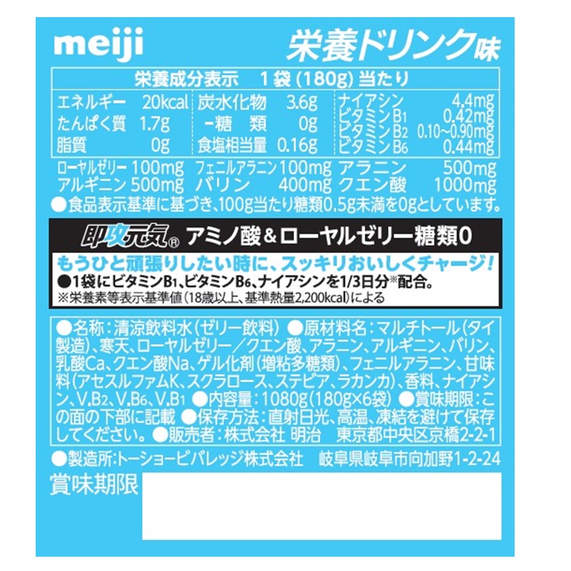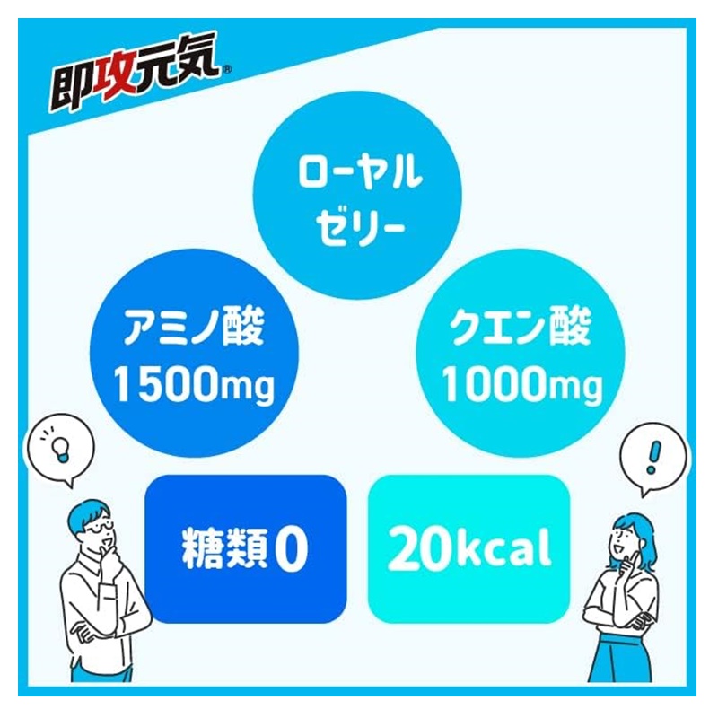 元気の素となるアミノ酸1500mgやローヤルゼリー100mg、クエン酸1000mgを配合しながら、カロリーオフで糖類をゼ