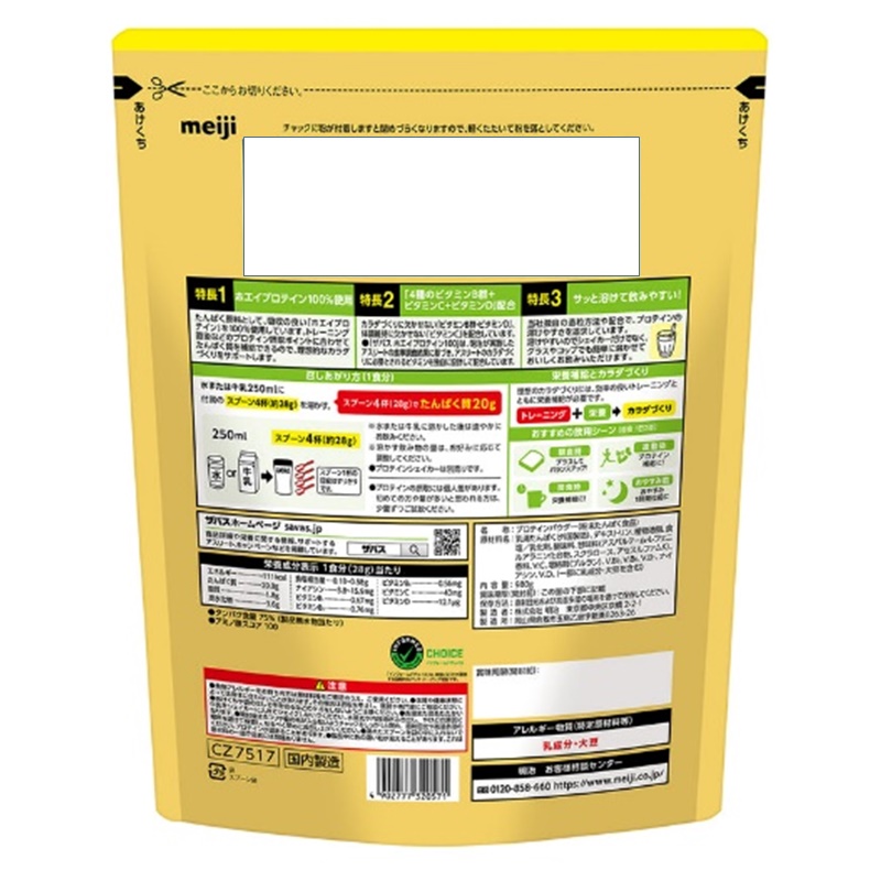 たんぱく原料として、吸収の良い「ホエイプロテイン」を100%使用しています。