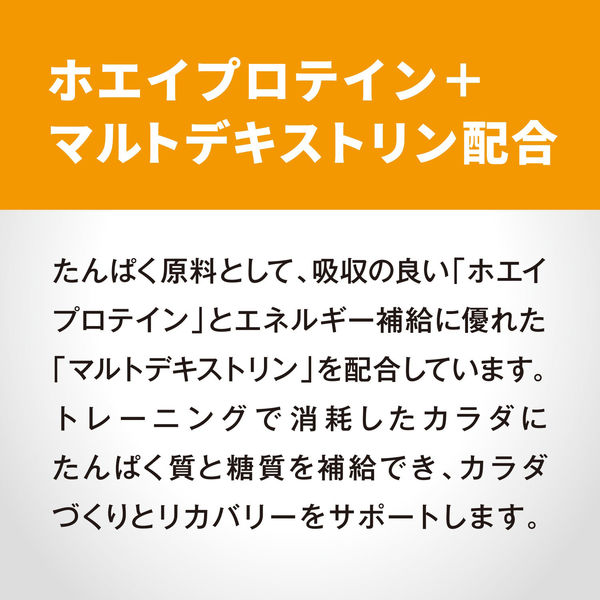 V.D)。無果汁。たんぱく原料としてホエイプロテイン100%。