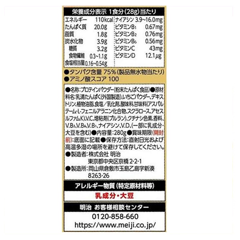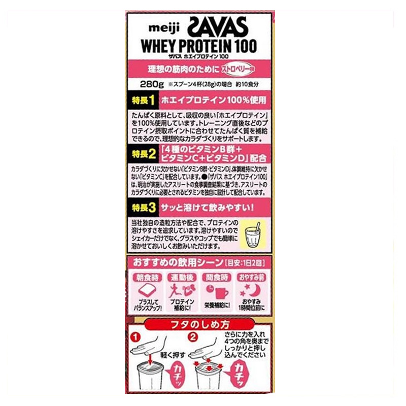 たんぱく質として吸収のよいホエイプロテインとカラダづくりに必要なビタミンを配合したストロベリー味の粉末プロテインで、理想