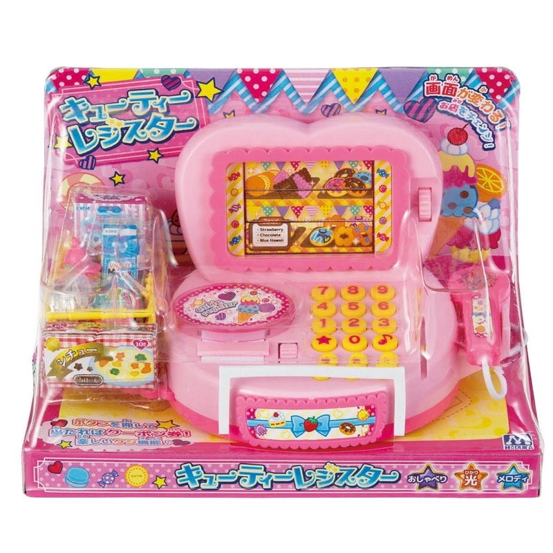 ・スーパーやコンビニのレジ係ごっこができる、かわいらしいレジスター型のおもちゃ。