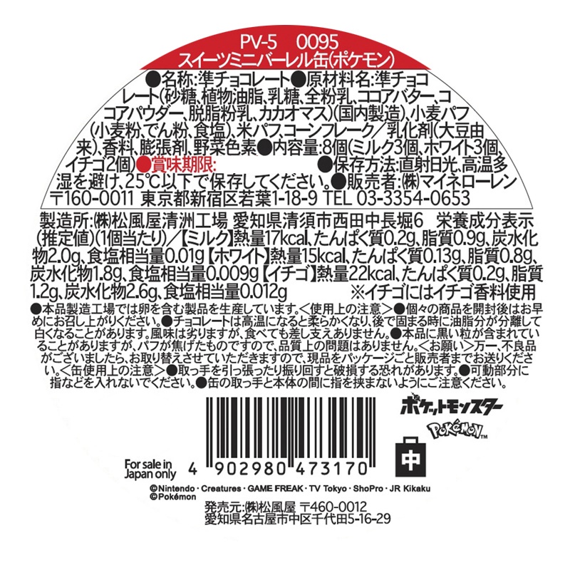 ポケモンがデザインされた取っ手付きの缶にクランチチョコを詰め合わせました。