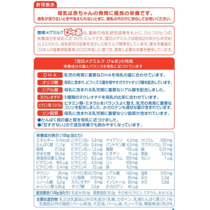 ・リン脂質 母乳に含まれる乳児期に重要なリン脂質が含まれています。