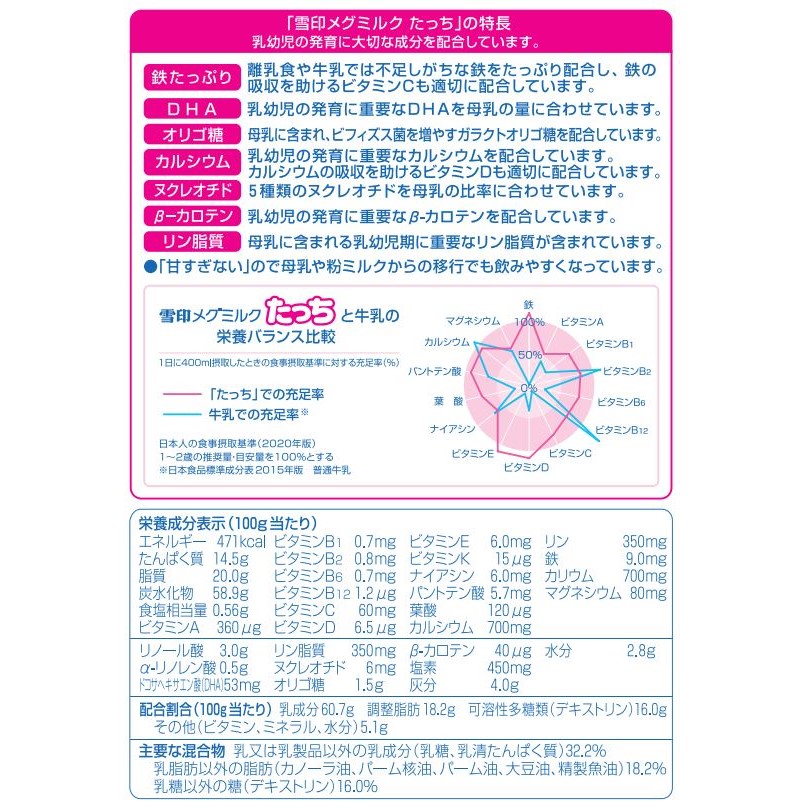 離乳食だけでは不足しがちな栄養をバランス良く補うミルクです。