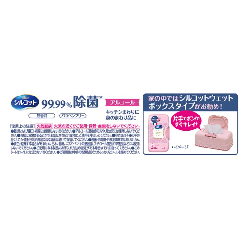 ●お出かけ先に持ち運びやすい少入枚数のシルコットウェットティッシュ外出用(99.99%除菌)です。
