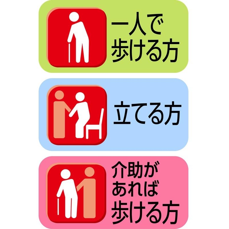 【ADL区分:1人で歩ける方 介助があれば歩ける方 立てる方 座れる方】
