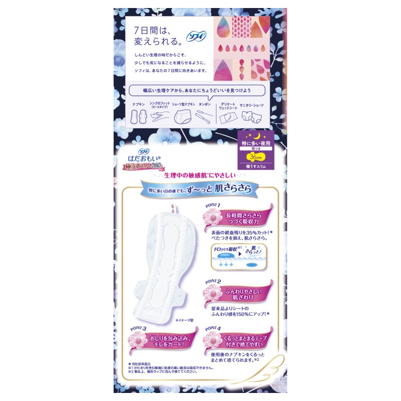 ●はだおもいは、生理中の敏感肌にやさしいナプキンです。