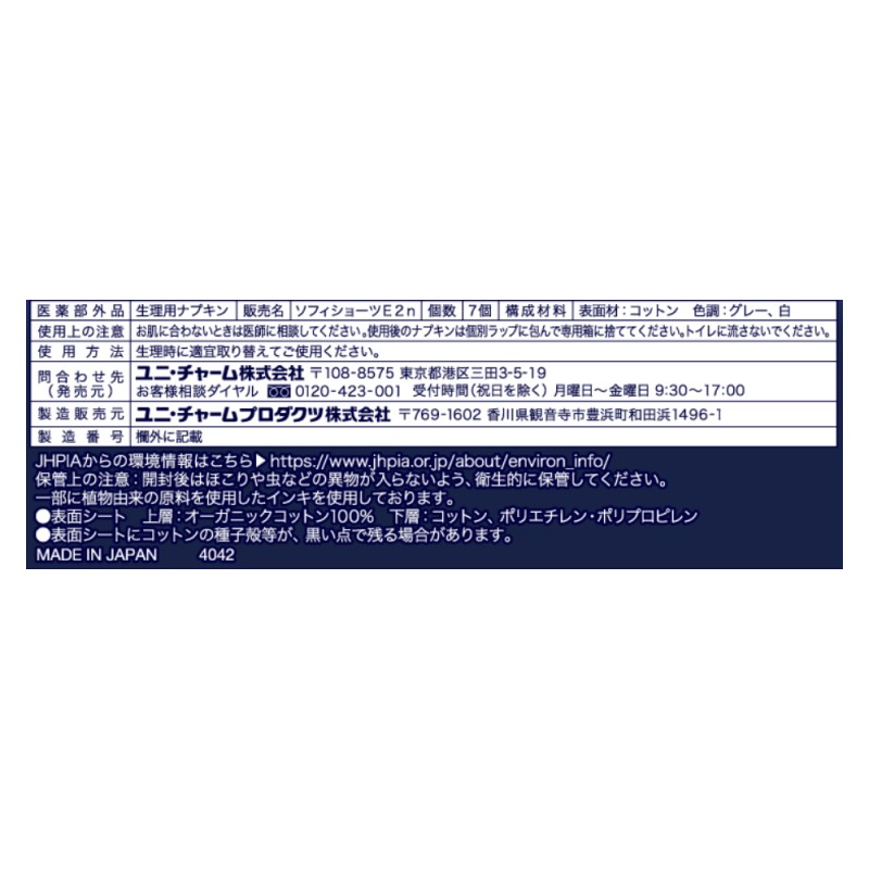 - ●表面シート(上層)…オーガニックコットン100%●表面シート(下層)…コットン、ポリエチレン、ポリプロピレン