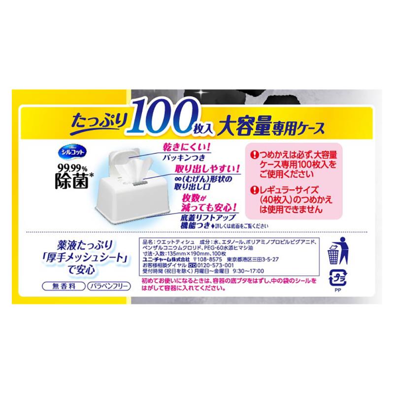 ●たっぷり100枚入、大容量専用ケース。乾きにくいパッキン構造。