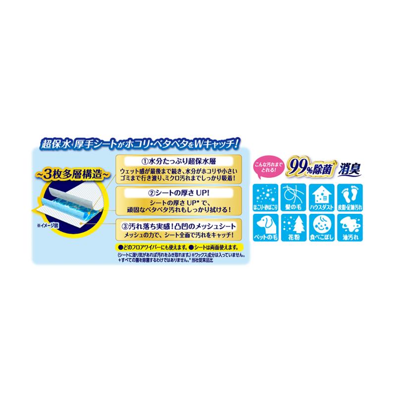 - 超保水厚手シートがひと拭きでホコリ・ベタベタをWキャッチ