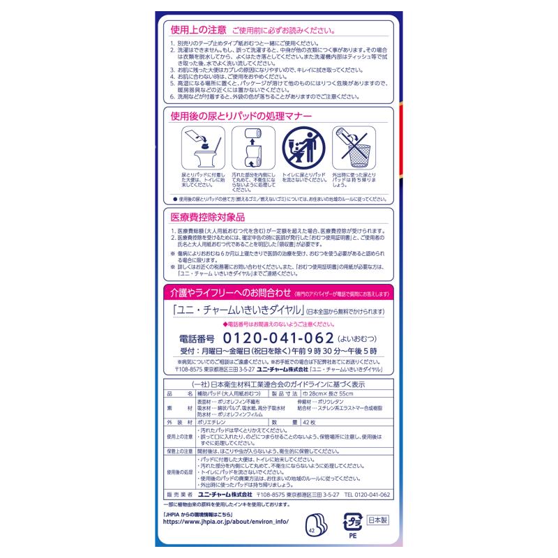 ●たっぷり4回分をぐんぐん吸収するので、尿量の多い方でも一晩中安心な尿とりパッドです。