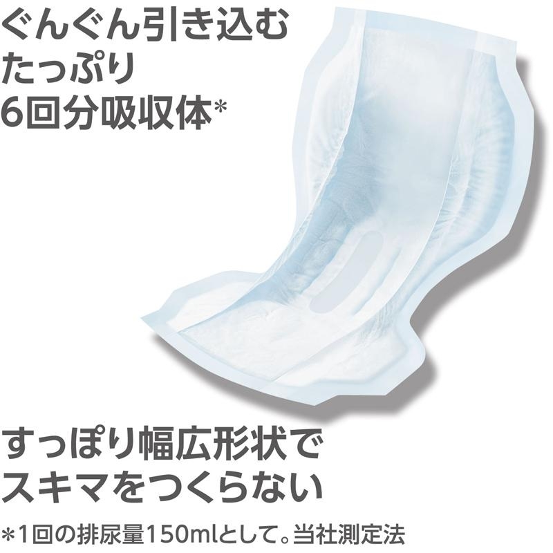 - 吸収回数の目安:約6回分(当社測定方法による1回の排尿量を150mlとして表記)