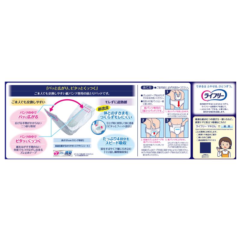 ●紙パンツの中にキレイに収まる長さ・幅専用形状なので、ぴったりフィットしモレ安心。