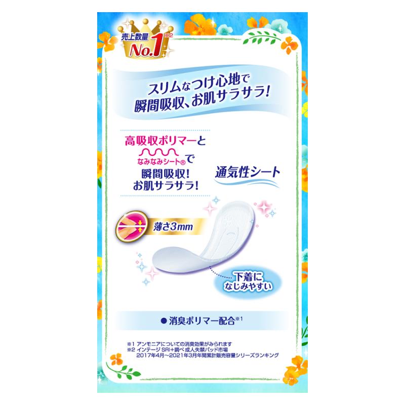 ●薄さ3mm。ライナー感覚のつけ心地のまま余裕の吸収力をプラス。