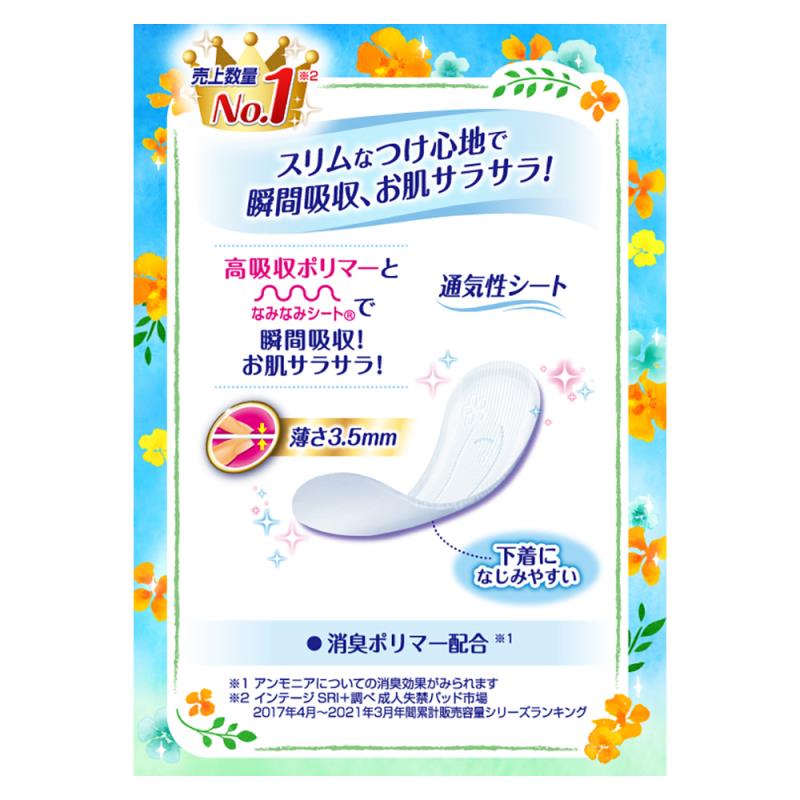 ●トンネル状拡散吸収体が尿をスピード拡散させ、しなやかスリムフィット構造が下着になじみ続けることで、スリムでも高い吸収性