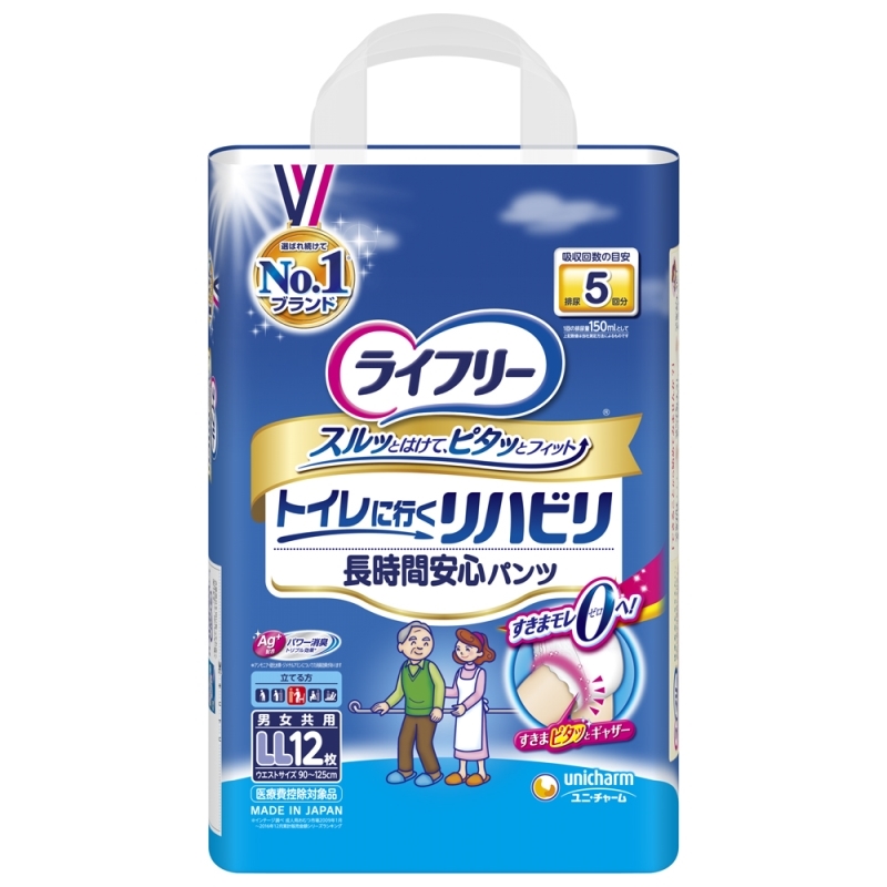 スムーズでご本人でも交換しやすい安心のおしっこ5回吸収です。ニオイを閉じ込める消臭ポリマー配合でニオイも安心です。