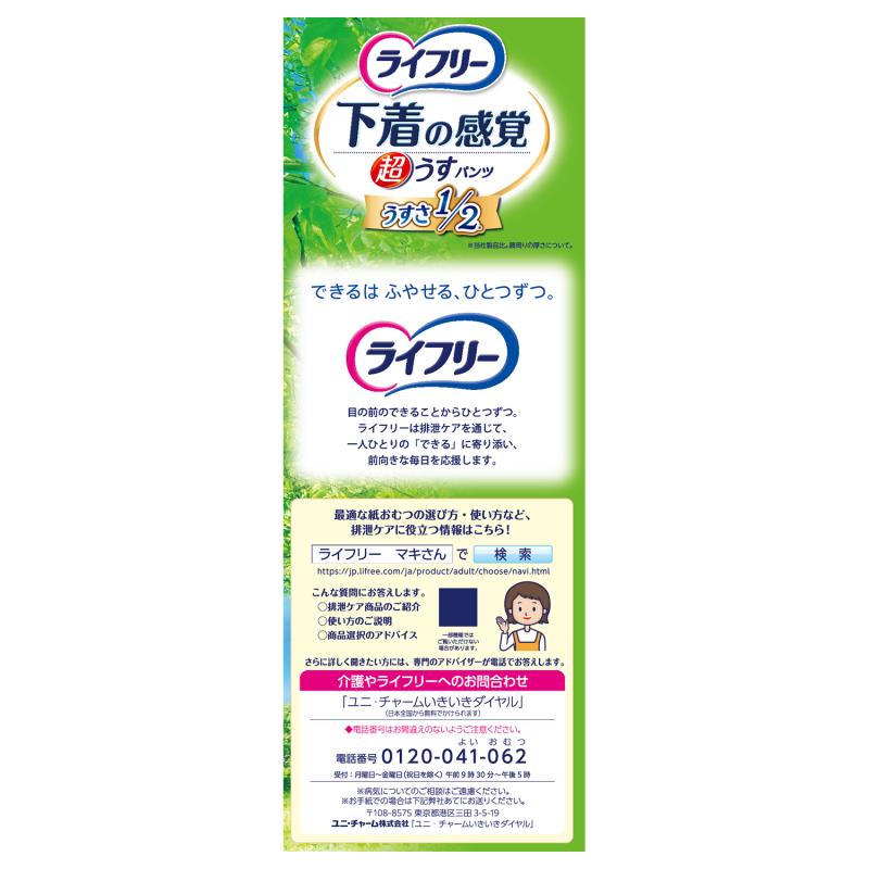●超うす吸収体なので下着のようにすっきりフィットし、全面通気シートで、ムレずにさらさら、見た目もはきごこちもすっきり。