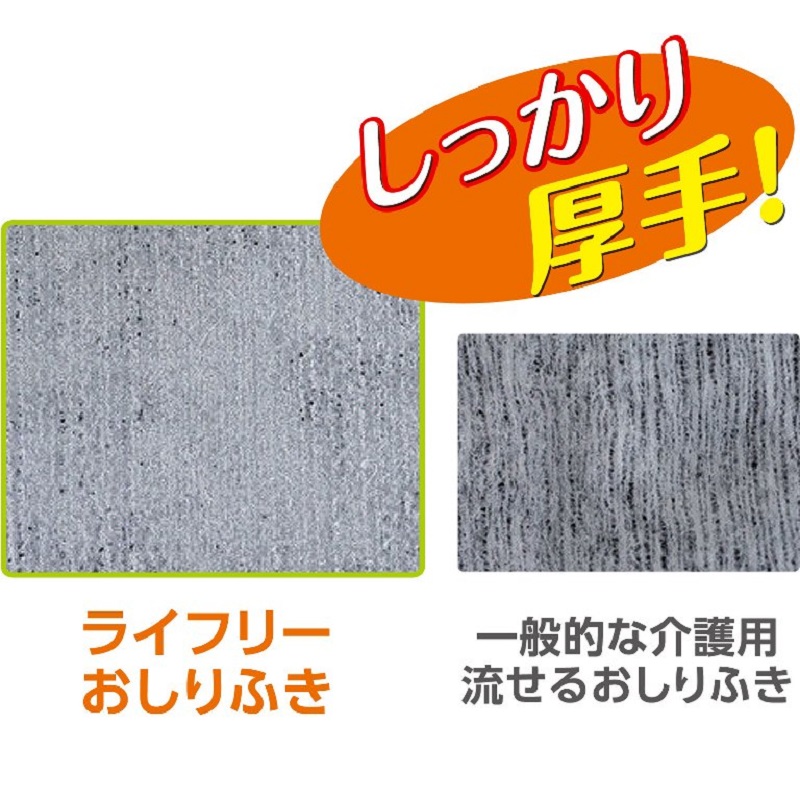 厚手素材でしっかり拭ける!トイレに流せるタイプのおしりふきです。後処理簡単!トイレに流せるので、後処理が簡単です。