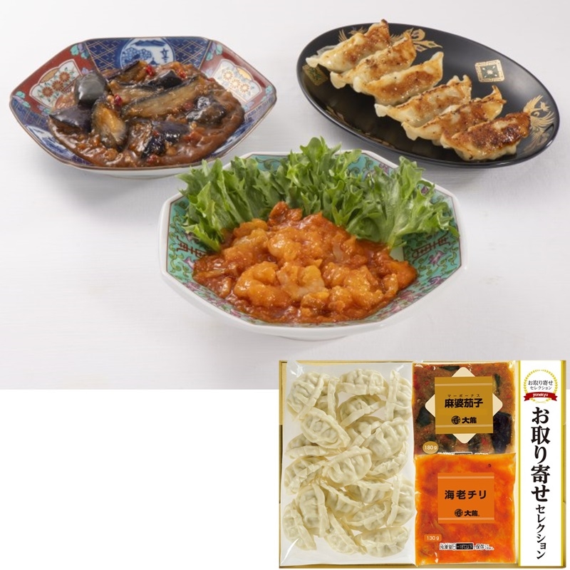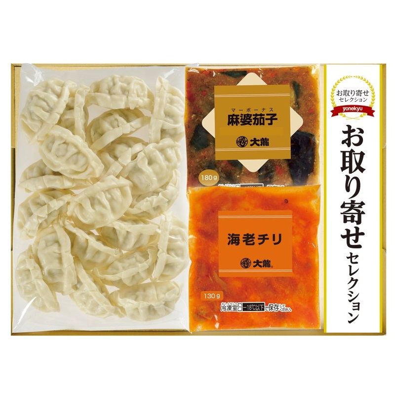 - 国産野菜とお肉の餃子360g、海老チリ130g、麻婆茄子180g