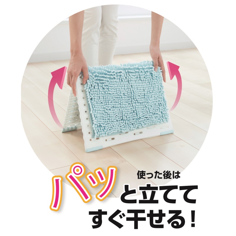 ボードを立てればそのままバスマットを干すことができ、コンパクトなので狭い場所でも使えます。