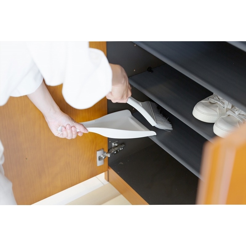 箒をチリトリからサッとはずせてすぐに使える。スッキリ収まるスリムなデザイン(厚み約4.6cm)。